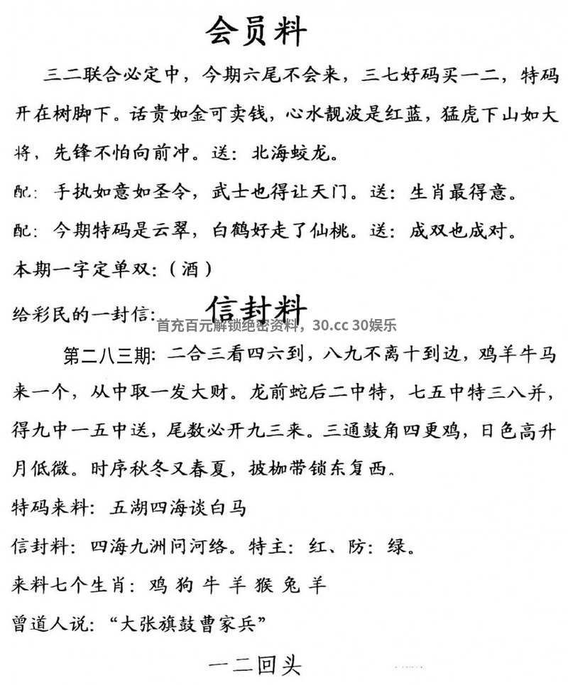 看资料,上特区总站,不中不要钱! |