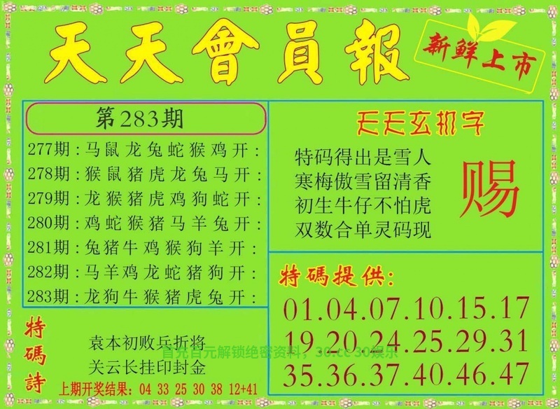 283期⑤码 | 22.46.19.37.02 | 發00中 |